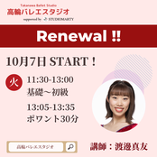 10/7(火)~渡邊真友先生クラスのレッスンがリニューアルとなります。