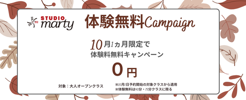 10月限定・体験レッスン1回無料キャンペーンを実施いたします。